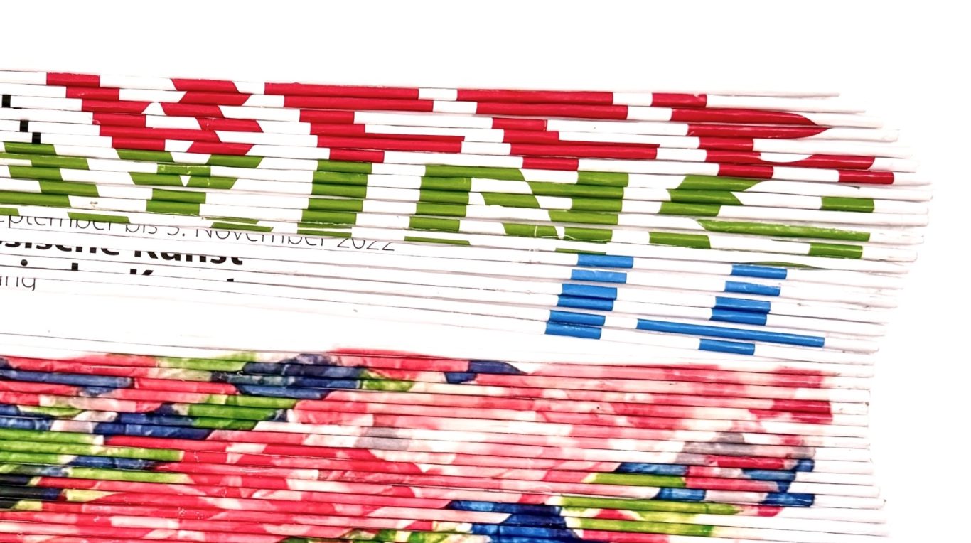 o.T. (220825), 2022, Acrylfarbe geschnitten und gefaltetem und geknülltem Kopierpapier; 104 x 74 cm