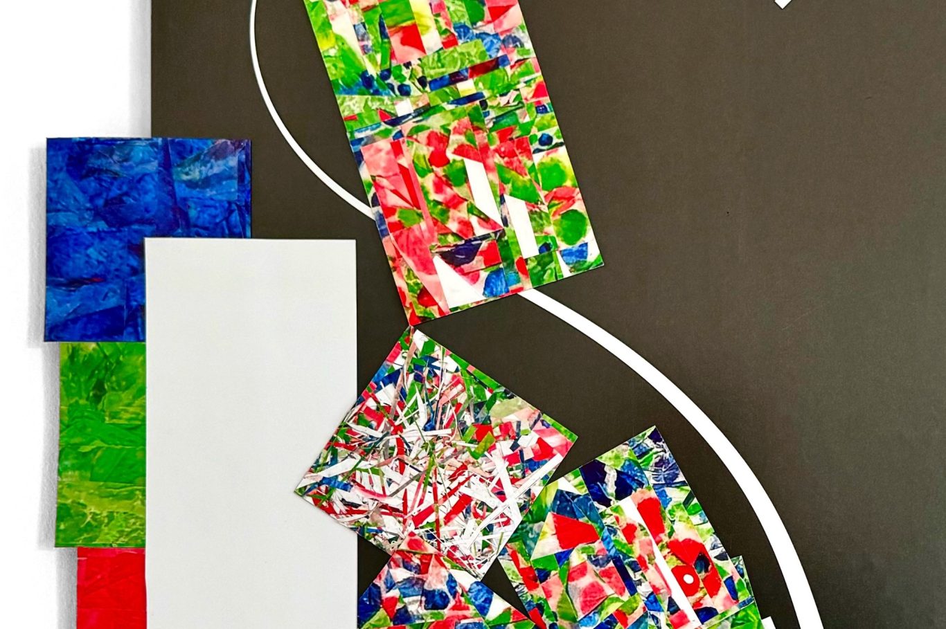 o.T. (mov - 4 - 240811), 2024, Acryl auf Papier, Collage, bewegliche Bildelemente; 42 x 52 cm